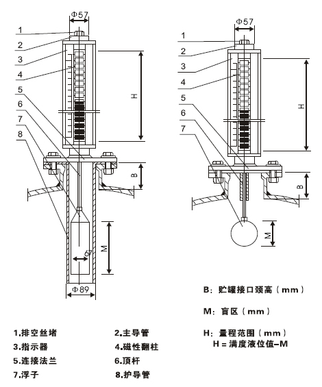 该液位计指示清晰,观察方便,就地指示形式有红白翻柱或翻球、浮标跟踪三种形式可选。如配上我公司生产的SCY-UB,SCY-UK远传配套仪表和SCY-500数显表,或我公司生产的SCY-UB,SCY-UK远传配套仪表连接到DCS或PLC系统,则可方便地实现远距离检测控制和报警。