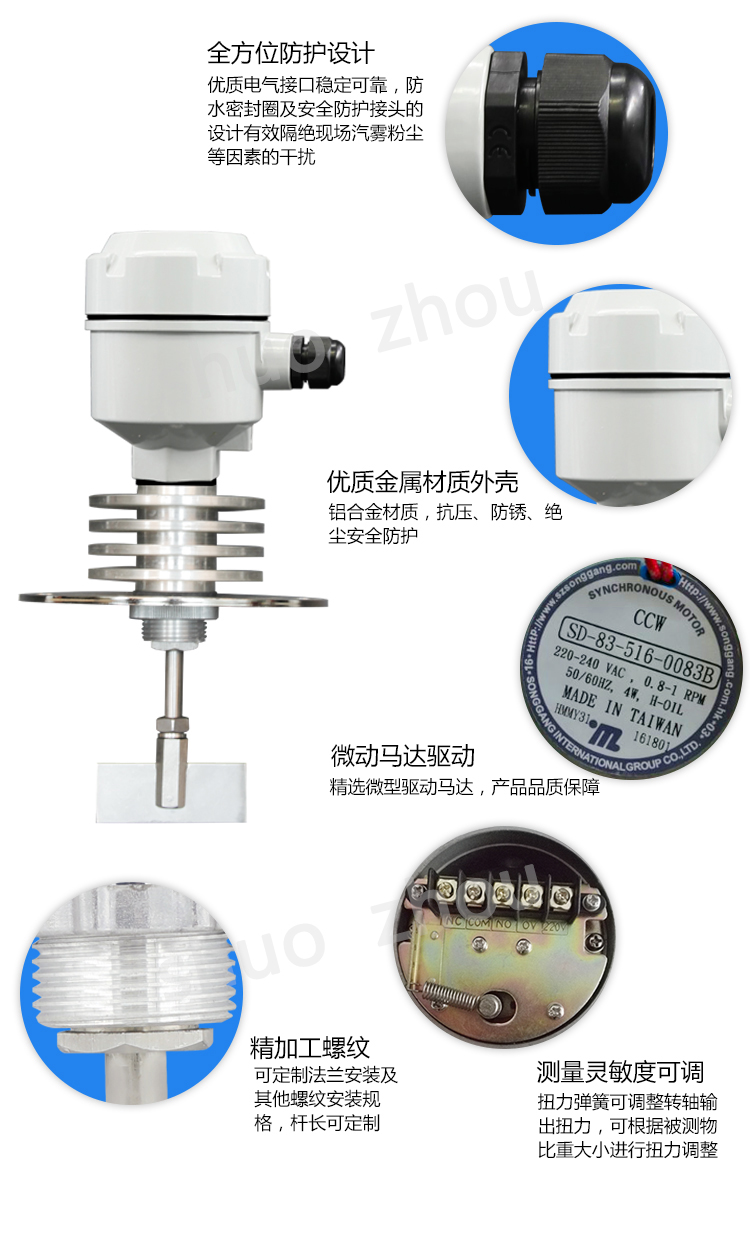 UZK型阻旋式料位开关适用于容器内料位的控制,仪表采用油封设计,具有双层防尘,并有离合器装置保护马达,使用维护方便,用于化工、食品、采矿、塑料、陶瓷等工业行业,是一种较理想的简易流料位控制仪表。