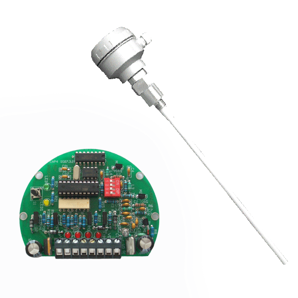 SZ88系列电容式物位开关是一种物位测量产品,采用射频电容,将容器内的物位变化量转化成电容变化量,探极作为电容的一个极板,容器壁(或辅助探极)作为另一个极板,通过电子插件把电容量的变化转化成脉冲频率的变化,由微控制器来完成报警点的设定和报警动作的实现。它克服了以往传统测量方法(如充放电法等)报警精度低、调校步骤复杂给用户带来的不便,通过一只设定按键来确认报警点,并将此报警点长期存储。若需改变报警点,需重新设定可。该物位开关适用于石油、化工、电力、冶金、机械、食品、制药、饲料等行业的液体、粉料及固体的料位测量与控制;并且产品有单点、双点、三点、四点可供选择。