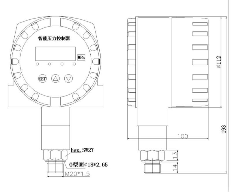 压力控制器是集压力测量,显示,输出、控制于一体的数显压力测控产品。该产品为全电子结构,前端采用带隔离膜充油压阻式压力传感器,由高精度的 A/D 转换,经微处理器运算处理,现场显示,并输出一路模拟量和四路开关量。