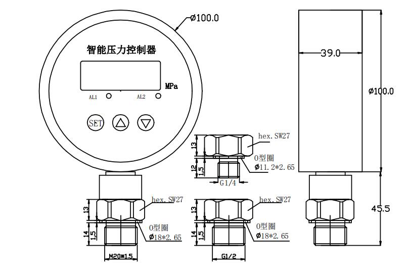 压力控制器是集压力测量,显示,输出、控制于一体的数显压力测控产品。该产品为全电子结构,前端采用带隔离膜充油压阻式压力传感器,由高精度的 A/D 转换,经微处理器运算处理,现场显示,并输出一路模拟量和四路开关量。