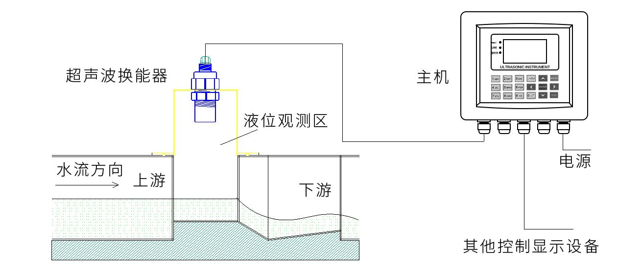 超声波明渠流量计,是利用超声波的发射、反射的特性测量流过量水堰槽流体的液位配合量水堰槽。